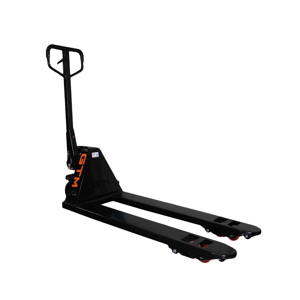 GTM SYP-IIK 2500 кг — професійне вантажопідйомне обладнання з посиленою конструкцією для регулярної інтенсивної роботи на складах, у торгових приміщеннях і виробничих цехах. Посилений корпус і гідравлічний вузол розраховані на тривалі навантаження та часті цикли підйому-опускання, що гарантує надійність протягом усього терміну експлуатації. Стандартна довжина вил 1150 мм дозволяє безпечно працювати з європалетами (1200×800 мм і 1200×1000 мм), не ризикуючи пошкодити товар. Збільшені колеса забезпечують стабільність під великим навантаженням і плавний рух. Чорне порошкове покриття захищає металеві поверхні від корозії, подряпин і механічних пошкоджень, зберігаючи презентабельний вигляд навіть після тривалої експлуатації. Конструкція оптимізована для роботи в умовах високого темпу складських операцій.