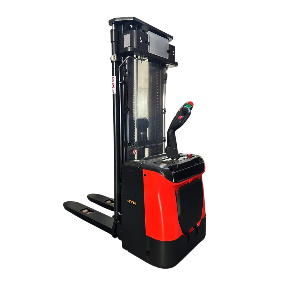 Система з двох незалежних електродвигунів розподіляє навантаження: потужний мотор 2,2 кВт керує підйомом важких вантажів, а 0,75 кВт відповідає за швидке та плавне переміщення. Швидкість руху з вантажем досягає 4 км/год, без вантажу – 4,4 км/год. Складана платформа для оператора забезпечує комфорт під час роботи на довгих відстанях та економить місце при зберіганні. Чавунні колеса з поліуретановим захистом (4 передні, 2 задні) витримують тривалі навантаження, а радіус розвороту 1481 мм забезпечує маневреність. Штабелер працює на поверхнях з нерівністю до 6°.